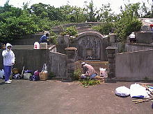やってきて、それぞれがお墓周辺の掃除にとりかかる。