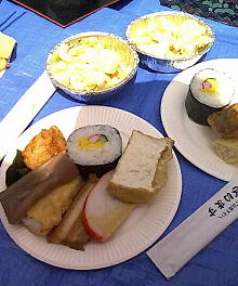 かまぼこ、ゴボウ、ねじりこんにゃく、こんぶ、魚の天ぷら、