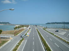 海中道路は勝連半島と平安座島を結ぶ海の上の道路だ。