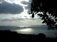ウージの間からは中城湾の緑の海や青い空が見える。