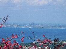 望遠で見たところ、伊江島を背景に