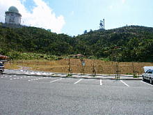 山頂への道中にある駐車場で、写真撮影をしている