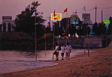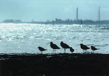 今泉真也と行くワッター自然 第5回 秘密の浜はアリマスカ? 自分だけの、または自分だけのものと考えている場所が誰にもあると思いま す。そこを人に話してみようか、秘密のままにしておこうか、たいそう悩むよ うな所です。 沖縄島で最も変化の激しい土地のひとつに北谷があります。 羽賀健二さんのお店で有名だったり、どでかい観覧車があったりします。 8つのスクリーンを持つ映画館には僕はたびたびお世話になっています。 この街の外れに、というか船による交易が盛んだった昔は中心だった海岸に、 自然の砂浜がまだ少し残っています。長さ150メートルあまりの浜はコンクリ ートの堤防に遮られて、混雑する車道からは見えません。最近漁港拡張のため 4分の1ほどが埋め立てられ、また狭くなりました。 県営団地に接した入り口から草をかきわけて浜に下りると、 とたんに車の騒音が遠のき、寄せる波の音に替わります。 視界は街のサイズから解き放たれて、遠くに広がる海原へと自然にのびてゆき ます。足下にはまだ輪郭をちゃんととどめたサンゴの骨がびっしりと敷きつめ られています。座り込んでよく見てみると、貝のかけらが相当混ざっているこ とに気づきます。どれもそう古くなく、つい最近、50〜100年前まではここが 豊かなサンゴの海だったことを思わせます。 一時期、この浜の掃除を頻繁にしていたころがありました。 大型のビニル袋に毎週10袋あまりも缶やゴム、プラスチックなどの廃物が集ま ります。こうしたゴミ拾いというのは続けているとだんだん快感になってくる もので、つい熱中してしまいます。無心になって釣り糸やゴム草履の抜き型な んかと向き合っている間に、この浜を今でも頼りにしているさまざまな生きも のたちと 出会いました。各地の自然海岸が減ってゆく現在にあって、 彼らにとってここは本当に「寄りどころ」といってもいい場所なのかも しれません。 海を越える長旅の途中に立ち寄る渡り鳥たち。 彼らはいつからここを知っているのでしょう。 この小さな浜で毎年卵をかえすシロチドリの夫婦。 5月、デートの人たちで賑わう堤防のすぐ下で、 彼らは冷え込む夜の間ずっとヒナを抱いています。 朝の散歩に浜へやってくる犬や老人。登下校のたびにわざわざ 浜から通ってゆく子どもたち。砂の干潟に住むカニやエビ、貝たち。 寄ってくる魚。それを獲る人や鳥たち。 ぼくは大事なお客さんを迎えた時、夜になるとこの浜に一緒に 行くことがあります。人工物のないきれいな浜ならほかにもあるけれど、 車とはいえアパートから海への道をまっすぐ降りてたどりつく 近所感覚のこの浜に行くことが、何かとても大切なことのように 思えてならないのです。 僕たちは自分の古里の記憶というものを持っています。 けれど、それは過去でなく現在につながるものであって初めて僕らはここに生 きたといえるのではないでしょうか。 秘密の浜はアリマスカ? …子どもたちに伝えたい古里はアリマスカ? |