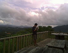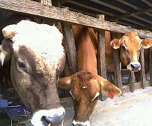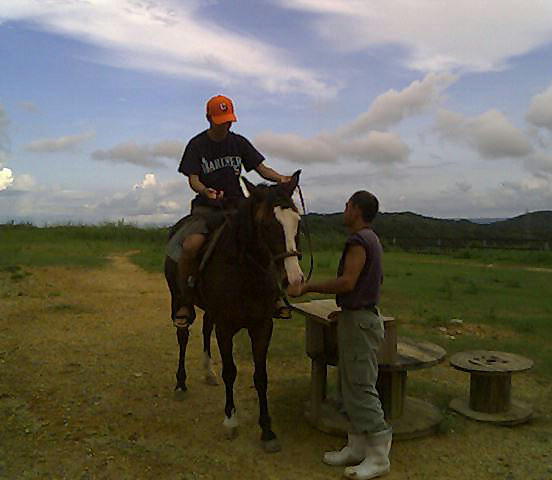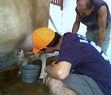 本部半島をドライブしよう! その3 ●沖縄で北海道気分! 今帰仁村の「ベルパライソ」を後にし、本部半島中央の山頂にある 「ユートピア牧場」へ向かう。 県道72号線を南下し123号線へ右折(名護方面からは、県道84号線を 経て伊豆味パイン園を過ぎ県道123号線へ入る)、しばらく行くと 「ユートピア牧場」の案内表示(今帰仁側からは小さい赤い矢印)が出てくる。 そこから1kmほど走ると、右手に再び案内が出てくるのでそこを右折する (ちなみに、『るるぶ』の地図は明らかに間違っているので要注意だ。 あれではまずたどりつけないだろう)。 さぁ、ここから先は車1台分しか通れそうにない 非常に狭い山道が続くので覚悟を。 両側の木々にさえぎられ対向車の見えにくいカーブや急な上り坂など、 これでもかというほど悪路が続く。いつになったら牧場に着くのか、 本当にこの先に牧場があるのかと不安になってしまうけれど、 あきらめないで。 対向車とは2度出くわし、ぶつかりそうにもなったが、何とか すれ違うことはできた。 ようやく、シーサーの乗った門らしいものが見えてきても、先はまだある。 引き返したい気分に何度も襲われたものの、 「正門」にたどりついた時にはほっとした。 入り口左側には「カーボーイ」という展望喫茶店がある。 だがそこは道がまだ狭いので、門を抜け、駐車場のある坂の下まで進む。 駐車場は牛舎に囲まれていて、たくさんの牛に出迎えられた。 ここは標高300メートル。さすがに空気がヒンヤリしている。 「ユートピア牧場」は、乳牛を飼いミルクを搾る酪農業を営んでおり、 牛と馬のほか、羊やポニー、ラマ、イノシシ、くじゃく、ハスキー犬と、 さまざまな動物とのふれあいを体験できるようになっている。 「乳搾り教室」と書かれた牛小屋の前で犬の世話をしていたスタッフに 「乳搾りやってるんですか」と聞くと、「やってますよ。今お客さんいなくて 寂しいですけど……どうぞ」と牛小屋の中へ入れてくれた。 まず、お手本を見てから、絞り方を教わる。 最初は何度搾っても全く出ない。牛が何度もイヤそうに振り返って私をにらむ。 握力が弱いせいかと思ったが、要はコツだという。 なるほど、説明を聞きながら何度も挑戦するうちに少しずつ コツが分かってきて、ある瞬間から勢いよく乳が出てくるようになった。 乳搾りの後は、乗馬を体験する。愛称ツイスターという馬とともに、 坂の上の馬場へ移動した。乗馬はまったくの初心者なので、 スタッフに綱を引いてもらえるのかと思ったら、 簡単な説明を受け、一人で乗らなければならない。 手綱の持ち方、引き方からして難しい。 両足でわき腹をポンと叩くと、動き……いや、歩き出した。 どうも生き物であることを忘れ、乗り物の意識になってしまう。 行きたい方向へ手綱を大きく引っ張るが、なかなかうまくいかない。 調教されたおとなしい馬ではあるが、私の手綱さばきが中途半端なため、 すぐに草を食べ始めてしまう。思いっきり手綱を引っ張り顔を上げて やるのだが、またグググと元に戻り草を食べ続ける。 「なめられてますね」とスタッフは苦笑い。しかし、こっちは必死だ。 怒ってるんじゃないか、振り落とされるんじゃないかと 気が気じゃない。それでも2周目にしてようやく自信を持って 手綱を引くことができた。相当な力が必要だが、相手は馬。 気持ちを込めることが何より大事なようだ。 馬を降り、「いくらですか」とお金を払おうとしたら、 「あ、ほんとは最初に上の売店でチケットを買ってもらうんですよ。 売店で払ってください」と言われた。そうだったのか! でも、 入り口には何も書いてなかったし、そのスタッフも何も言わないから、 てっきりここで払うものかと……。ずいぶんのんびりしたものだが、 いやな顔ひとつせず体験させてくれて、感じのいいところだなぁと思う。 早速、展望喫茶「カーボーイ」へ。乗馬と乳搾りの料金を後払いし、 ミルクジェラート(300円)を食べる。ジャージーとブラウンスミス、ホルスタ インの3種の牛乳をブレンドした牧場独自の濃厚な味わいだ。 また、ジャージーチーズを載せた熱々トーストやチーズ味のひらやちといった 軽食もある。カップ入りアイスやヨーグルト、チーズ、ゆーとぴあ牛乳は お土産にも良い。 この喫茶店のテラスからは素晴らしい眺望が楽しめる。 伊豆味高原のすがすがしい自然が眼下に広がり、 ここは沖縄だということを忘れてしまいそうなほど新鮮な景色だ。 それにしても、生まれて初めての乳絞りと乗馬を、 沖縄で体験することになるとは思わなかった。(M) 「ユートピア牧場」 住所:本部町伊豆味3360-2 → 地図 電話:0980-47-6216(カーボーイ47-6112) 営業時間:午前10時半〜午後5時半(喫茶〜午後6時半) 定休日:無休 費用:入場無料。牧場見学はいつでもOK 乳搾り体験:350円(土日のみ) 乗馬体験:大人500円、子供400円 毎日(月曜、雨天除く)午前10時半〜12時半 午後1時〜5時 火水木は30分コースあり 駐車場:マイ