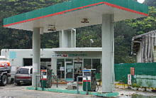 本島北部の給油所はここだ新緑の季節がやってきた。 これから北部の森の緑はまぶしく映る。 さっそく車や二輪車で走ってみたいという人のために、 給油所の場所を紹介しておこう。知っている人は 知っているけれど、知らない人は知らない(当たり前)。 西海岸を国道58号で北上すると、奥間ビーチ前に 給油所があるのは知られている(写真上)。ここから先、 給油所は奥までないので、燃料計とニラメッコすべき地点だ。