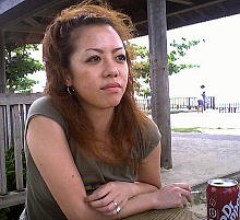 上門一三(うえじょう・ひとみ)さん 「カラー、エクステーション、シャンプー、 マッサージは私にまかせて」という一三さんは 美容師である。 近くの体育館へ行き、 筋トレ、バスケ、バトミントンと日ごろの ストレスをスポーツで解消している。 そのせいで筋肉痛になっているが、「この痛みを乗り越えれば筋肉になる」と 体を動かす。 最近のマイブームはジャパンレゲエ。 三木道三やムーミン、HIP-HOP、R&Bなどの音楽を聴いて ダンスを楽しんだり飛んだりはねたりはしゃいだりと、もう大変! よく行くクラブはKING OF MANIA (キングオブマニア)、 略してキンマリである。以前はよくライブに行き、 ウェーブをしたりダイブしたりとはじけまくっていた。 本当に元気いっぱいだ。 最後に彼女から一言。「ニックネームはイチミ(一三)だよ」 「でィ!」 美容師 1978年生まれ。中部出身(出身地は秘密) |