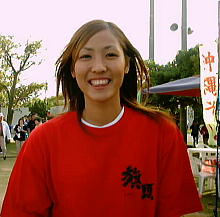 豊里亜由美(とよさと・あゆみ)さん 長身ですらりとした彼女は、高校1年の時から バレーのレギュラー選手だ。専門学校の課外活動で 選手として今も活躍している。 「今度専門学校のバレーボール大会で 大分に行くんですよ」と、とてもうれしそうに話す。 大会に向けて張り切っているせいか、生き生きと輝いて見える。 世界のウチナーンチュ大会でボランティアをしているところを 発見し、取材した。ボランティア活動が好きで、 この大会以外にもいろいろな面で活動している。 取材が終わると、すぐに持ち場に走って戻って行った。 さわやかな笑顔を残して。(沖縄王・日高昭子) 国際リゾートスポーツ科学専門学校スポーツ科1年 1982年生まれ。名護市出身 |