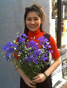 仲西乙子(なかにし・いつこ)さん 月に1、2回は北谷で映画を見る。 ファンタジーからアクションものまで幅広く見るが、 中でも好きなのはディズニー映画だ。「夢のある 作品が好きです」 花を扱う仕事をしている。花を通して人に夢を与える仕事である。 「夢のあるもの」が乙子さんのキーワードなのかもしれない。 今は「もう1人自分が欲しい」と思うくらい仕事が忙しい。 夜中まで作業をしたり、夢に仕事が出てくることさえある。 疲れないわけではない。しかし、「私にはやっぱりこれしかない」 と思い、勉強を重ねている。 将来は外国で暮らしてみたいと思っている。 かつて旅行した時にのどかな雰囲気を感じた サンフランシスコで、働きながら暮らしてみたいという。 夢は実現するためにある。夢があるからこそ生活に彩りが 加わる。前向きな乙子さんなら、きっと大丈夫。 (沖縄王・西野浩史) 生花業 1973年生まれ。沖縄市出身 |