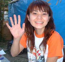 川満美和子(かわみつ・みわこ)さん 趣味はアクセサリー作りと料理、花を育てること、 絵を描くこと。多趣味で器用そうな彼女はとても明るくて、 場の雰囲気を盛り上げる不思議な魅力がある。 それもそのはず、TVで大活躍中の「川満センセー」 の妹さんなのです。明るさは納得できます。 塾の講師としてアルバイト中。 中学の英語と数学が受け持ちです。きっと生徒たちから 人気があるんでしょうね。オイラも生徒に なりたい(コレバッカ)。 好きな男性のタイプを聞いてみた。 答えはズバリ「醤油顔」だそうです。 この時点でオイラは対象外ですな(;_;)。 あ、バイト先はかの有名な明光議塾です。 お兄ちゃん共々「川満センセー」でした。 (沖縄王・宝島太郎) 沖縄国際大商経学部4年 1979年生まれ。浦添市出身 |