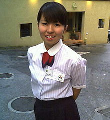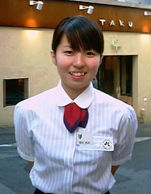 国吉似奈(くによし・にいな)さん 白と水色のストライプのシャツに紺のひざ丈のスカート、 ドトールコーヒーのユニホームで登場してくれた。国際通りにある ドトールコーヒー松尾店でアルバイトを始めて1ヵ月が過ぎたところだ。 名札には若葉マークがついていて、ういういしさを感じる。 16歳の高校生である。こんなにかわいい女性が コーヒーを注いでくれるなら、世の男性陣にとっては至福のコーヒータイムを 満喫出来るに違いない。 高校ではバスケットボール部に所属していた。 しかし、アルバイトをするために去年12月に退部した。 なぜ、アルバイトをしようと思ったのか。 高校卒業後、看護の専門学校への進学を考えている。 その学費を今から準備しようというのだ。 おばが看護婦をしていることや、看護婦を扱ったテレビのドラマや ドキュメンタリーを見て「人の役に立ちたい」という思いが募ったことが、 看護の学校を目指すきっかけになった。 ドトールでのバイトは毎週3〜4日だ。「いろいろなお客さんが来るので、 勉強になります。特に笑顔で注文してくれるお客さんはいいですね。 こちらの疲れが吹き飛びます」 いやいや、そんなかわいい笑顔で対応してくれたら、 お客さんの疲れは200%吹き飛ぶよ。(沖縄王・日高昭子) 豊見城高1年 1985年生まれ。那覇市出身 変酋長の蛇足 国吉さんが注いでくれたコーヒーを味わい、至福の ひとときを過ごしたのが私です。確かに疲れが200%吹き飛びました。 待ち合わせ場所に国吉さんが登場した途端、 スタッフの昭子ちゃんは叫びました。「かわいい!」 国吉さんを“大発見”した私は胸を張りました。えっへん。 どんなもんだい。 取材と撮影に私は同席しました。カメラを向けると、 国仲涼子ちゃんに勝るとも劣らない笑顔が飛び込んで来ます。 取材のあと昭子ちゃんは私にこう語ったものです。「性格も顔立ちも 最高でしたね。本当にちゅらさんだった」。うんうん、自分が ほめられたかのようにうれしくなる私でした。 さぁこれからもドトールでコーヒーを飲もうっと。(沖縄王・西野浩史) |