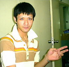 平良辰郎(たいら・たつろう)さん そのあまーいマスクからは想像出来ないほど超三枚目 (死語? やばい…?!)、いや、ひょうきん(これも死語? もう泥沼!)、とに かくおもしろい! この「ニーニー」コーナーへの登場をきっかけに、 お笑い界からスカウトされるのをたくら…いやいや、 目論んでいる。好きな芸人は、アルカリ三世の坂本ちゃんだ。 20才になったらお酒が飲めるようになるのが楽しみだとか。 うぷぷ。か〜わいい。 バイトが休みの日は、買ったばかりの車で 彼女とドライブを楽しむ。 「お気に入りの場所は?」と聞いたところ、「ヒ・ミ・ツ」だって。 「嘉手納町水釜でおシリをぶつけて以来やめてしまったサーフィンに、またトラ イしてみたい」。ビリヤードもかなりの腕前です。特技は「目から牛乳を出すこ と」。(G) フリーター 1982年生まれ。沖縄市出身 |