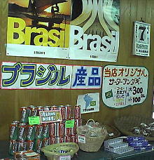 店内の一角にあるブラジル産品コーナー。コーヒー味のサーターアンダギーもある