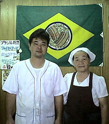 店長の山下さんとお母さん。バックはブラジルの国旗の中に沖縄そばが描かれたブラジル食堂のオリジナル・ロゴ 住所:名護市宇茂佐1703-6 →→地図 電話/ファクス:0980-53-5045 営業時間:平日・午前10時30分〜午後6時 土日祝祭日・午前10時30分〜午後7時 定休日:月曜・年始 駐車場:10台 メニュー ソーキそば(大) 600円 ソーキそば(小) 500円 牛肉そば(大) 550円 牛肉そば(小) 450円 三枚肉そば(大) 550円 三枚肉そば(小) 450円 やさいそば(大) 550円 やさいそば(小) 450円 三点そば(ソーキ・三枚肉・揚げ豆腐) (大) 550円 三点そば(ソーキ・三枚肉・揚げ豆腐) (小) 450円 ごはん 100円 フェイジョアーダ(豆と牛肉の煮込み) 1200円 ポルコアサード(焼豚) 1200円 ガリンニャアサード(チキンの焼肉) 1200円 マカホナーダ(そばゲッティー) 1200円 ブラジルコーヒー エスプレッソ 300円 ブラジル アイスコーヒー 300円 アセローラ生ジュース 400円 コーラ 100円 サイダー 100円 オレンジジュース 100円 自家製ぜんざい 300円 かき氷(オレンジ・メロン・いちご) 100円 かぼちゃとほうれん草のスフレ 300円 りんごとサツマ芋のパイ 300円 自家焙煎コーヒー豆 100g 400円 オリジナルサーターアンダギー(コーヒー・黒糖ゴマ・紅芋・かぼちゃ) 大300円・小100円 三月菓子 大300円・小100円 ブラジルジュース・アンタルチカ 150円 ブラジルジュース・ブラマ 180円 チョコセット(6コ入り) 250円 |
