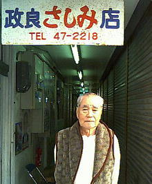 刺身をたらふく食べたい時は「政良さしみ店」 あるじの渡久地政良(とぐち・せいりょう)さんは 1918(大正7)年4月21日の生まれである。 この年は世界や日本でいろいろな動きがあった。例えば、 32カ国が参戦した地球初の世界規模の戦争・ 第一次世界大戦が終わった。日本では 8月に米騒動が始まり、9月29日には 原敬が初の本格的政党内閣をつくった。 そんな時代に生まれた人があるじであることは 知っておいたほうがいいだろう。 昔はいろいろなメニューを用意していた。壁には 今も「焼魚」や「魚煮付」などの 張り紙がある。それはあくまでも名残である。 現在のメニューは魚の刺身(ごはん付き)だけだ。 運ばれて来たのがこれ(1番目の写真)である。 ご飯の盛り上がりぶりは見事だ。大きなお皿に入った 刺身もまた見事である。 魚魚(ギョギョ)! ……失礼、話を戻そう。 刺身皿を見てみよう(2番目の写真)。ミソとカラシで作った たっぷりの汁の中に刺身が山盛りである。刺身の下には きゅうりがこれまたたっぷりある。 刺身がどれくらい入っているか数え始めたが、 18でやめた。何せそれ以上入っているのは確かだ。 ミソとカラシの汁がうまい。刺身もうまい。しかも多い。 800円で刺身をこれだけ食べられる店を私はほかに 知らない。 本部の漁港が目の前なので、買いだめしない。 毎日売れる程度しか買わない。刺身は新鮮だ。今回は マグロだ。季節に応じてカツオやカジキなどが出てくる。 終戦後にこの店を始めた。最初はテントだった。次は トタン、そしてセメント瓦……と歴史を経てきた。確かに店内は レトロ感が漂う。ここではあえて写真を掲載しない。 こういう店に行くのに事前学習をしてしまうと、 新鮮な感動がなくなってしまうからだ。 注目すべき1つは“シャッター”だろう。 この店の“シャッター”は金属製ではない。 昔ながらの「戸」である。これを上から 数枚降ろして、戸締りする。戸袋が上にある方式を 今も使っている。 県議など沖縄の政治家の似顔絵と琉歌を 描いた紙(3番目の写真)が壁にたくさん張られている。 渡久地さんが毛筆で描いたのだ。ほとんどが 本部町出身の政治家である。「沖縄県で偉い人が一番 出ているのがこの本部。でも、町は発展しないけど」 こんな張り紙もある。 さしみ屋を止めて事ム員になれと 可愛いカマドさんは泣いて言ふた だけど僕は事ム員にはなれぬ さしみ屋はさしみ屋の道がある 政良さしみ店 政良作 聞けば「カマドさん」は妻であるという。 なぜ事務員にならなかったのか? 渡久地さんは 淡々とした口調で教えてくれた。「さしみ屋が好きだった。 (この店で)みんなと付き合って話などができるから」。 (沖縄王・西野浩史) メニュー 魚の刺身 800円 |
