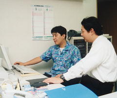 ちなーんちゅは顔を見ただけで分かるさー」と言っていた。赤嶺さんの顔を見ると、「である」。ん? 話がそれたみたいなので、元に戻そう。 いま2人は2つの新規開設に向けて忙しい。その1つは「沖縄かりゆし」のホームページの新規開設だ。 選手の経歴や昨年の試合データなどを載せる予定である。もう1つはファンクラブの新規開設だ。 このほか、サッカースクールの支援もある。こちらはいわばサッカーの塾だ。小学生から高校生まで を対象に「沖縄かりゆし」の選手やコーチが技術指導するということで人気を集めている。毎週火木 の夕方の練習はこのG.Wに始まったばかりだ。 Jリーグへの道はそれほど簡単ではない。しかし、少しずつ前進しているのは事実だ。その背景にス タッフのこうした地道な奮闘があることを紹介しておきたかった。