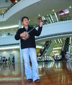 「三味線のプレスリー」川門正彦さん 三線に惚れ抜いた三線の伝道者ここにあり 「八重山では『節』を『ブス』と言うんです。 『デンサー節』は『デンサーブス』になる」と説明して、 「舟もデンサー、声もデンサー、何もデンサー」と歌い、 お客さんの笑いを誘う。大阪風のボケ味の語り口で 距離を詰めたかと思ったら、ベンチャーズを思わせる指使いで 三線を鳴らして圧倒する。さらに三線をベース風に 用いて、ジャズベーシストのソロ演奏の雰囲気を見せつける。 どんな歌でも川門風に変え、情感を込めて歌う。盛りだくさんの 舞台を披露してくれる川門正彦さん(35歳)の素顔に迫った。