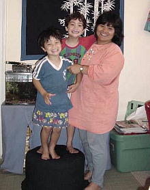2人の子供に囲まれる由子さん