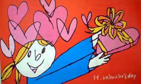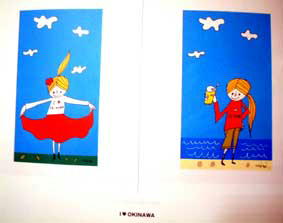 新進気鋭のイラストレーター大城美玲さん デザインの素敵な家具や雑貨を取り揃えているお店が 那覇市小禄金城に最近出来たので、のぞいてみた。 なるほど、フランスやイタリアからの直輸入だけあって、 家具や食器類の展示を見るだけでも楽しくなる。 そんな一角を利用して、こじんまりではあるが、 人目を引くイラスト画の個展が開かれていた。 原色をふんだんに使って女の子を描いている。 伸びやかでリズム感あふれる描写は、 見る者を楽しくさせる。また、単純な線ながら確固たる存在感が 漂う描写は、店の雰囲気と非常に合っている。